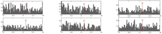 is the number of observations from the examined random sequence, and is the number of classes in the frequency histogram. Then the probability density histogram was calculated according to Formula (5):