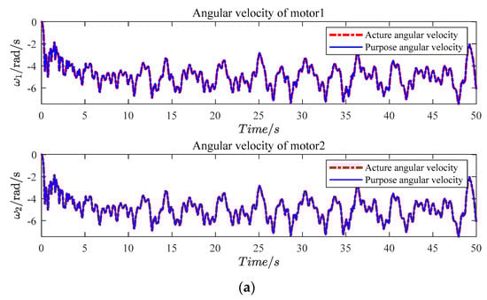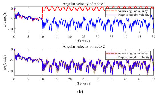 The angular velocity of motors. (a) With actuator fault; (b) without actuator fault.