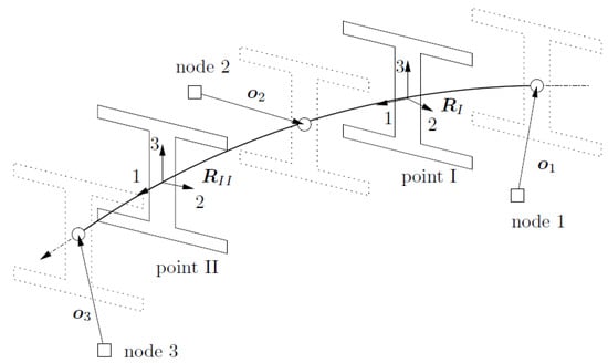 An example of a three-node beam element geometry, reproduced with permission from []. 2017, Paolo Mantegazza and Pierangelo Masarati.