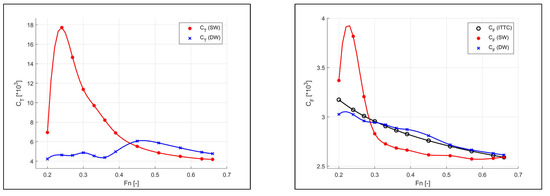Wave-making resistance coefficients of the catamaran.