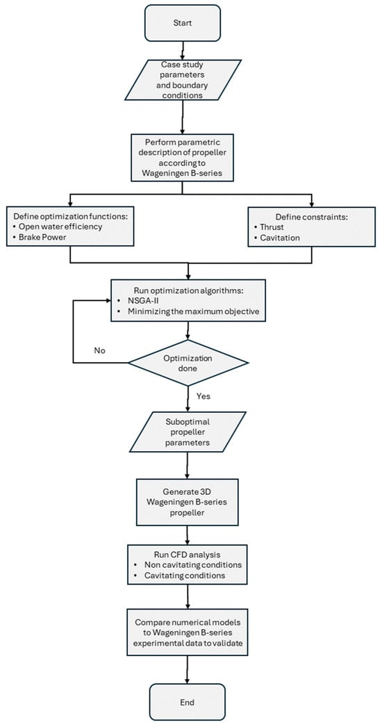 The overall process for the multi-objective optimization design and validation of a Wageningen B-series propeller is described in Figure 1.
