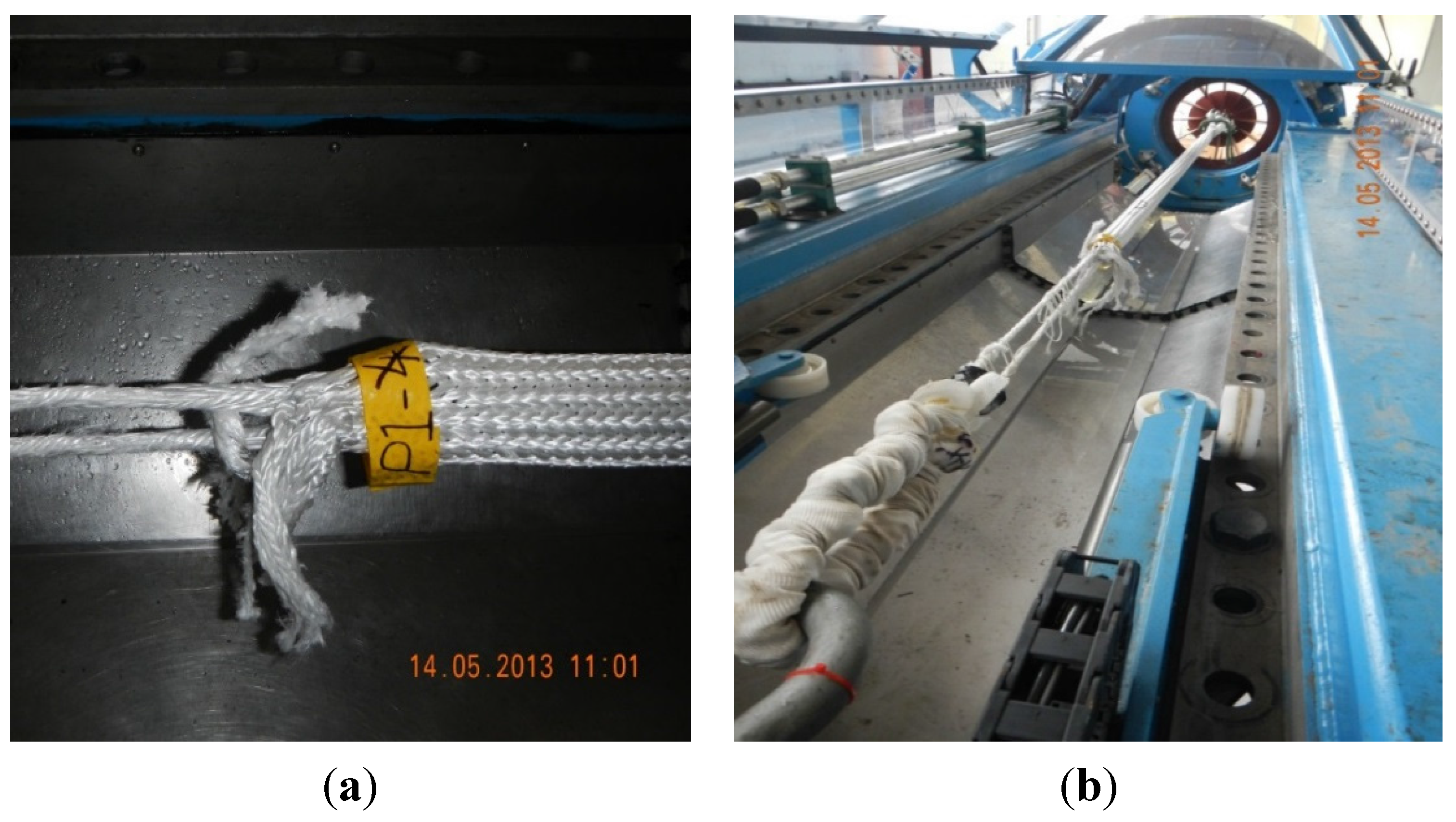 - McKenna, H.A.; Hearle, J.W.S.; O’Hear, N. Handbook of Fibre Rope Technology; Woodhead Publishing in Textiles: Cambridge, UK, 2000. [Google Scholar]