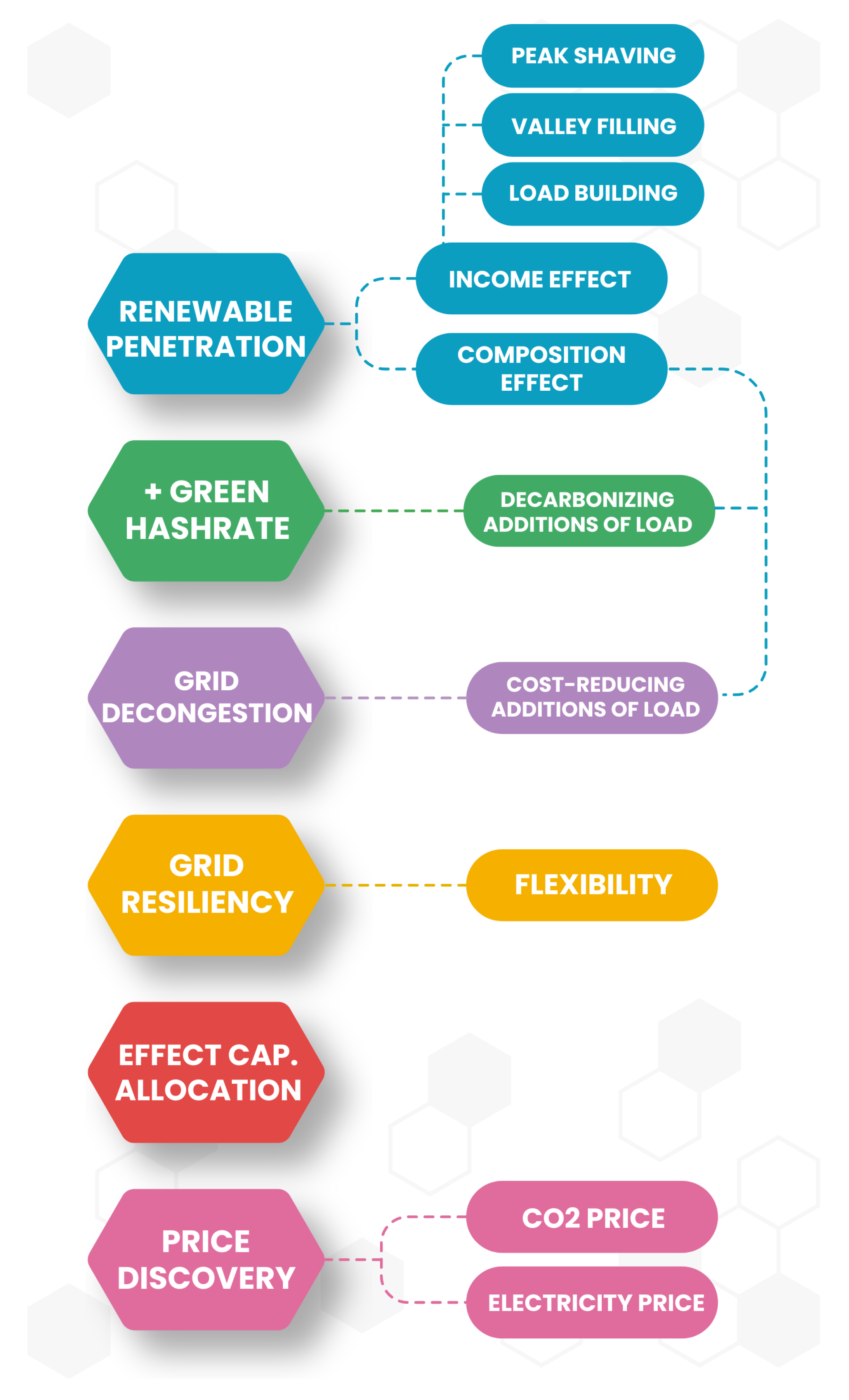 | First or Last Resort Buyers | Mining can provide a primary demand source that pays more than selling to the grid, encouraging new plant installations. Bitcoin miners do not replace other consumers in first-resort scenarios caused by a connection queue. It can also provide last resort demand for periods of excess supply [1,46,53]. |