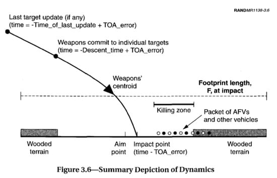 Even when the long-range precision fires were available, as discussed above, their effectiveness was a mystery in the mid-to-late 1990s. Two entity-level simulation studies had differed by an order of magnitude in estimating the effectiveness of different scenarios [,]. Understanding this was very difficult because the entity-level Janus simulation and the accompanying scenarios were very detailed. Janus tracked individual mechanized vehicles as they moved through digitized terrain and engaged through line-of-sight targeting; or, in the man-in-loop simulation of the Army’s long-range fire system (ATACMs), the process would include spotting a group of vehicles, transmitting information to an ATACMs battery, and launching ATACMs so that it might hit the advancing group at a projected future time and place.