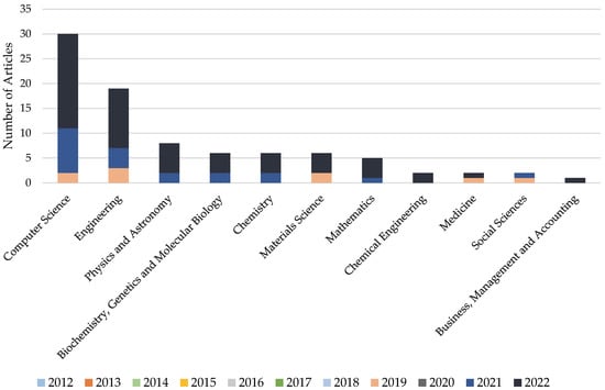 The key disciplines are computer science (30 articles) and engineering (19 articles). The majority of publications on the intersection of blockchain and ML in the context of security are in the computer science and engineering areas due to the close relationship between the implementation and development of these technologies, the importance of security, and the interdisciplinary nature of the research that requires expertise in multiple fields. These disciplines provide the foundation for developing blockchain and ML algorithms, and concentrate on the practical implementation of these algorithms in real-world applications, making them well-suited for investigating and proposing solutions to security problems.