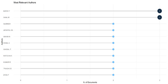 The most prolific authors are Barve Y and Saini JR, both with 3 published documents, each constituting 5.36% of the total papers extracted. Other relevant authors with 2 published papers are listed in alphabetical order: Alsmadi I, Apostol ES, Ashok N, Ekbal A, Ghosal T, Kotecha K, Kumari R, Truica CO, and Zhou F.