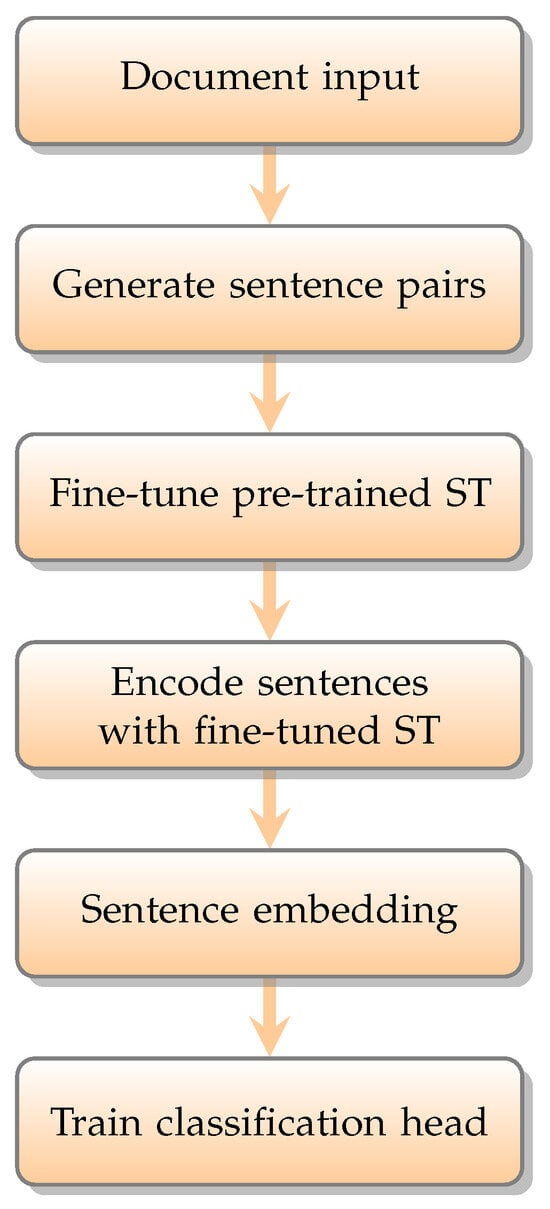 The scarcity of labeled data made this dataset prone to be categorized as a case of few-shot learning []. For this reason, we resorted to the SetFit method presented in [], which should allow us to obtain good accuracy even in the presence of a small number of labeled instances in our training dataset. SetFit relies on sentence transformers and falls into the class of few-shot learning methods, which aim to achieve good classification performances.