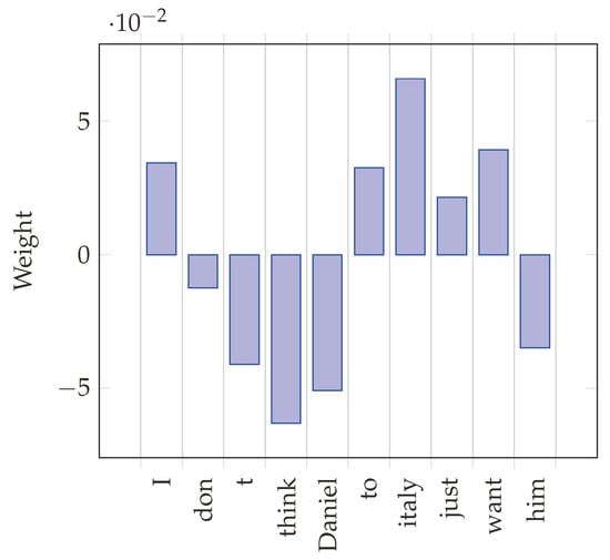 After obtaining the optimal encoding, we could use the embedding that was now associated with the tweets as features for the classifier. Specifically, the components of each embedding vector, together with the associated label, were fed as input to the classifier. As a classifier, we employed logistic regression, adopting the same choice as in []. The logistic classifier returned a probability value for each of the two classes. We chose the higher-probability class as the output of our classifier.