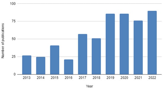 Considering the years of publication of the articles after removing duplicated papers, one can see the evolution of interest in human factors affecting industrial VR environments. In Figure 3 this interest can be seen more visually. It should be noted that this search was conducted in June 2023 and therefore 2023’s data are not displayed on the graph as the year is incomplete. However, it is expected that the number of publications during this year will be even higher as more than 75% of the identified publications date from 2017 to 2023 and VR technologies are increasing even more.