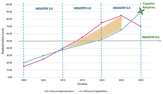 The data reveal a particularly troubling pattern: while technical security measures have advanced significantly, attack success rates have paradoxically increased through Industry 4.0 and 5.0, peaking at 40–50% in human-centric Industry 5.0 environments. This trend reflects the growing sophistication of adversaries in exploiting human behavioral patterns rather than technical system weaknesses. The projected reduction in Industry 6.0 environments assumes successful implementation of cognitive adaptivity frameworks, though this remains empirically unvalidated given the emergent nature of these systems. Of particular significance is the shift in human factor vulnerabilities from simple operator errors in Industry 3.0 to complex symbiotic dependencies in Industry 6.0. This evolution suggests that traditional cybersecurity training and awareness programs, designed for discrete human-system interactions, may prove inadequate for environments characterized by continuous human–AI collaboration and mutual adaptation.
