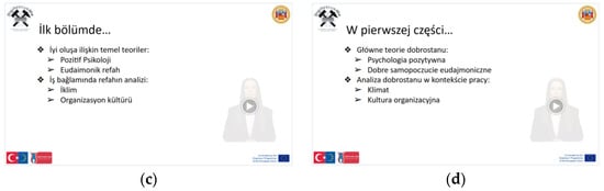 Multilanguage slides automatically created by the developed Google Script procedures in (a) English; (b) Italian; (c) Turkish; and (d) Polish.