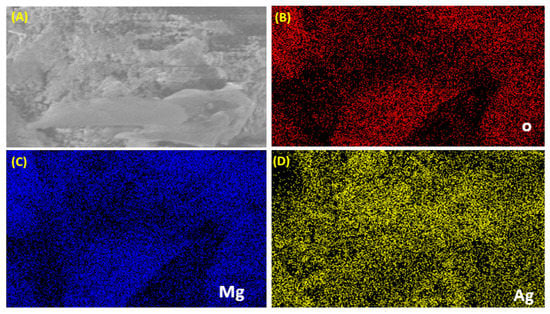 Figure 5 shows the elemental mapping of 7.5% Ag-doped MgO NPs. The Mg, Ag, and O elements are uniformly distributed as reported in other studies [].