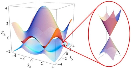 It is common for the Dirac point (Figure 2) to be chosen as the origin. The integral (6) then spans the limits (0, ) where  is the top edge of the filled electronic levels.
