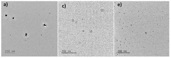 In this study, TEM analysis showed that the size of AgNPs was smaller than that estimated by DLS. Moreover, elemental analysis by EDX confirmed the presence of silver in the sample (Figure S1). The AgNPs synthesized at pH 12 were able to observe polydisperse particles with sizes from 10 to 60 nm in diameter, mainly individual particles (Figure 5a,b).