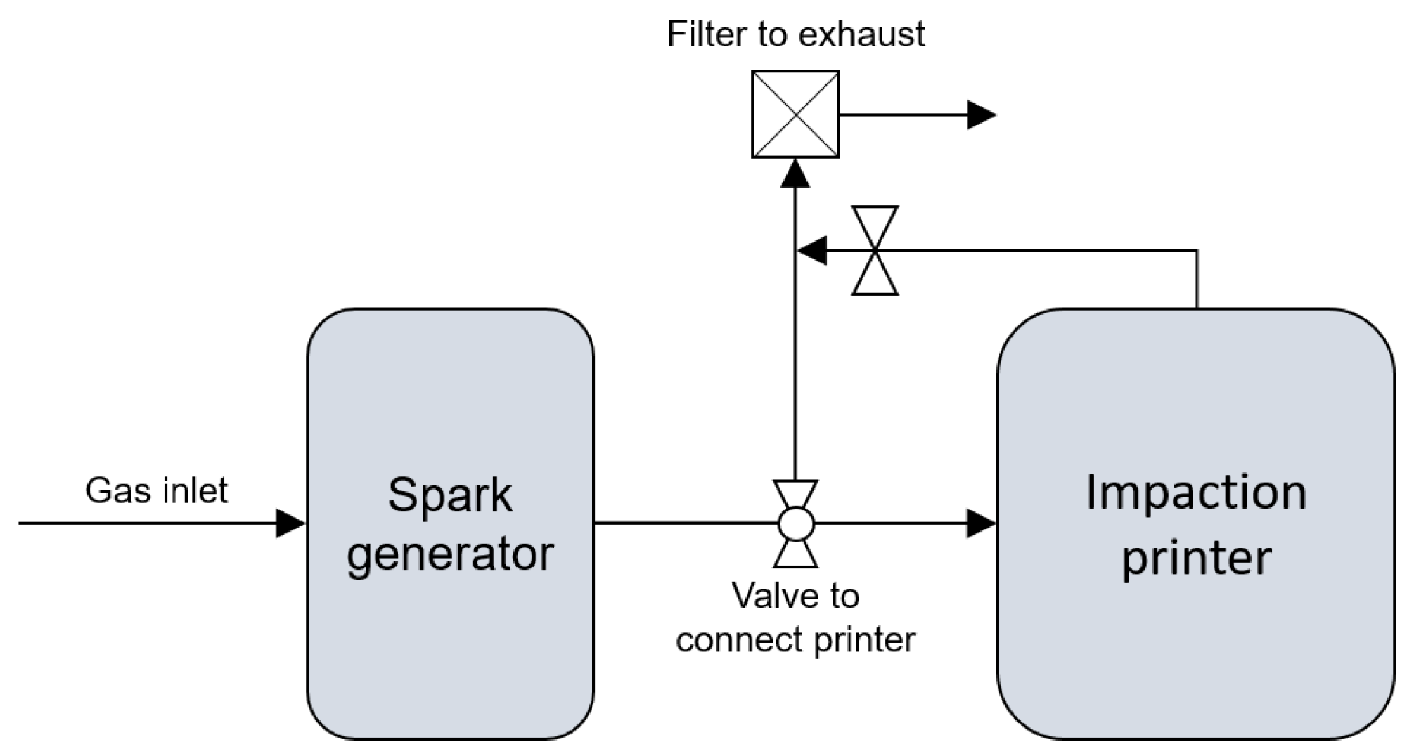 - de la Mora, J.F.; Schmidt-Ott, A. Performance of a hypersonic impactor with silver particles in the 2 nm range. J. Aerosol Sci. 1993, 24, 409–415. [Google Scholar] [CrossRef]