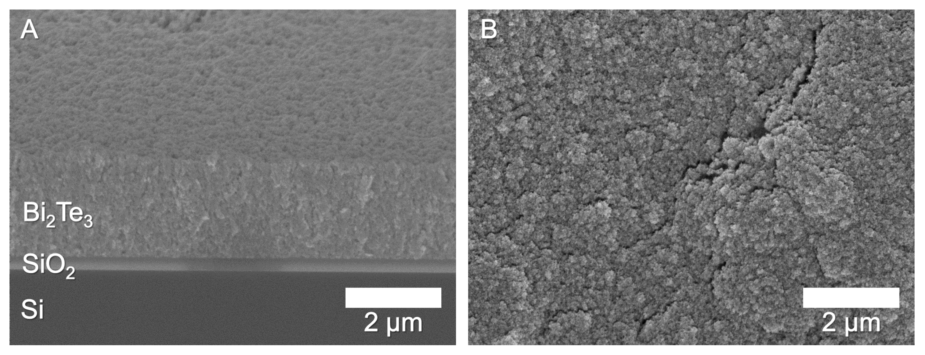 - Qiao, J.; Zhao, Y.; Jin, Q.; Tan, J.; Kang, S.; Qiu, J.; Tai, K. Tailoring Nanoporous Structures in Bi2Te3 Thin Films for Improved Thermoelectric Performance. ACS Appl. Mater. Interfaces 2019, 11, 38075–38083. [Google Scholar] [CrossRef]