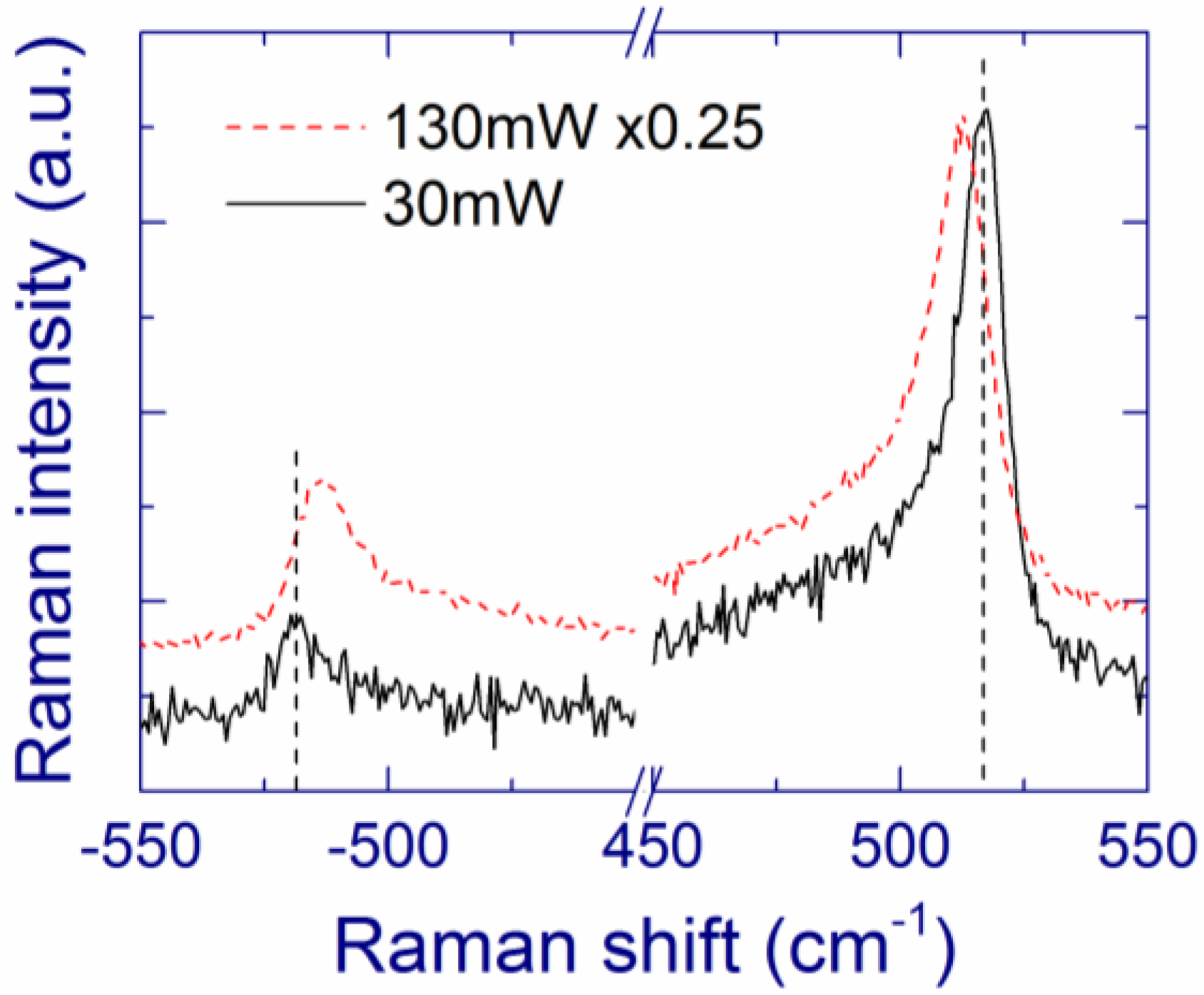 In Raman measurements of Si-nc, relatively high laser powers are usually employed to obtain a good signal-to-noise ratio. It follows that the laser-induced heat should always be carefully considered even for films on substrates (especially when using Raman microscopes) to obtain reliable information of the material structure. In general, laser heat, local stress, and phonon confinement are overlapping effects with respect to the Raman spectra.