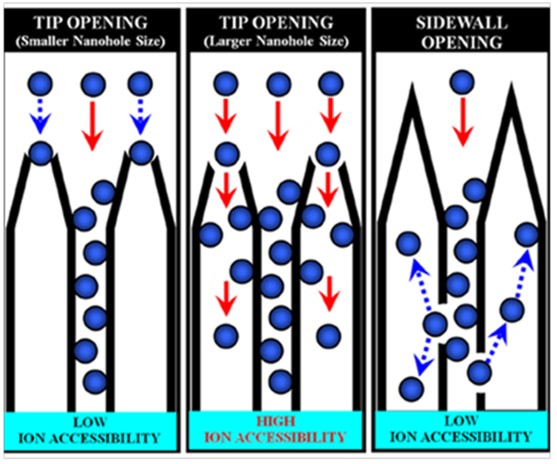 Schematic illustration of ion accessibility with regard to the internal spaces of SWCNHs. Reproduced with permission of [75]; American Chemical Society, 2015.