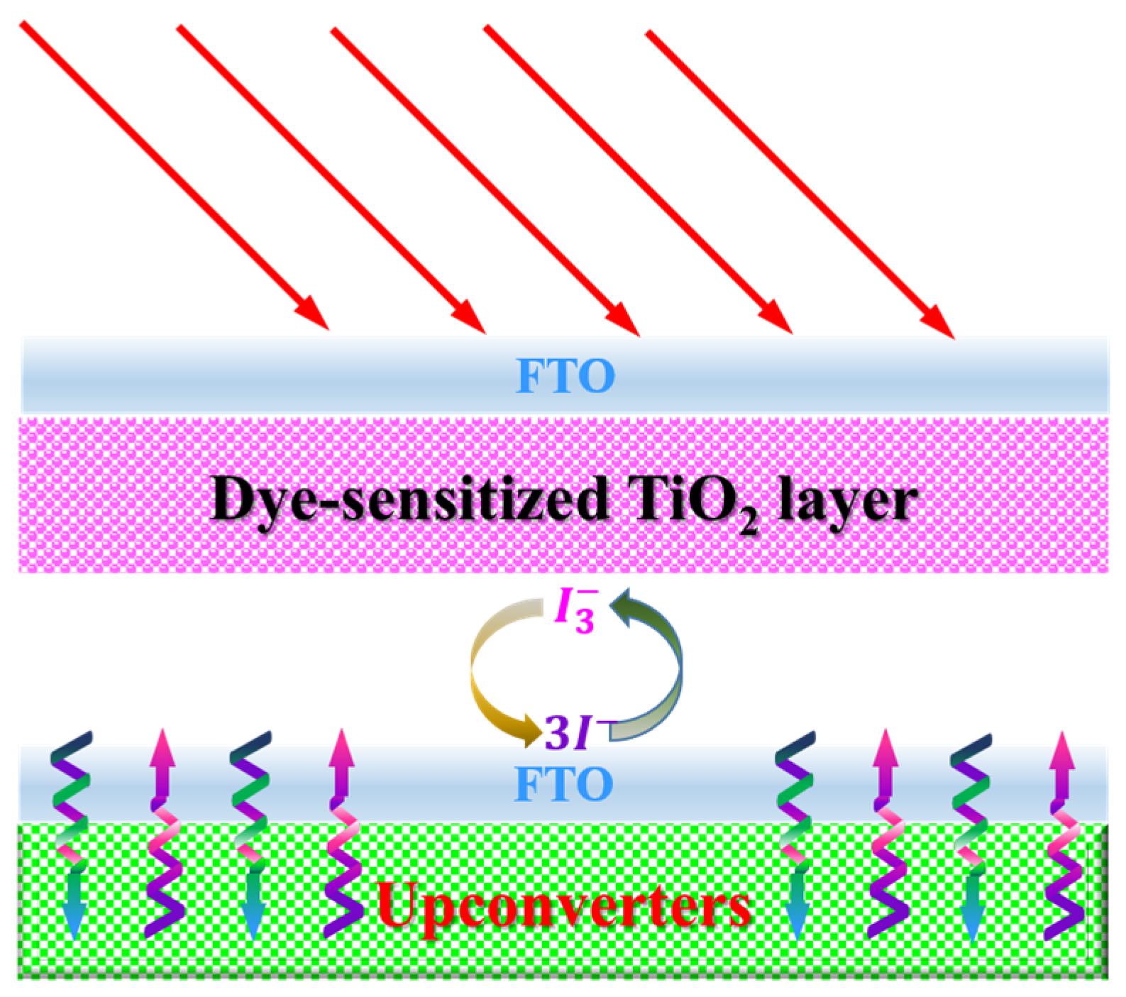 A typical schematic configuration of a DSSC equipped with upconverters.