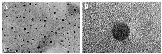 TEM (A) and HRTEM images (B) of R-CDs.
