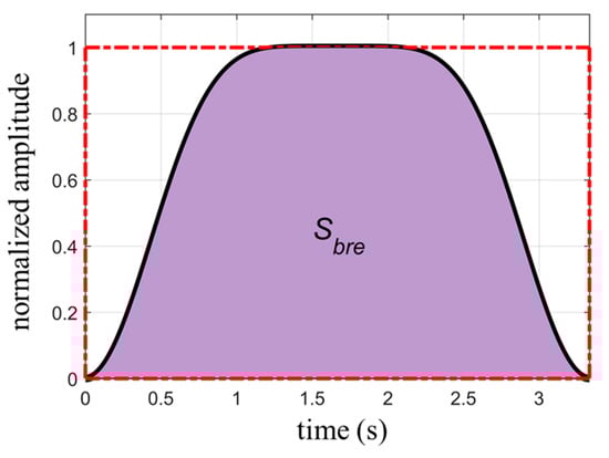 where is the area covered by one respiratory cycle. The duration of a respiratory cycle is , and the circumscribed rectangle area of the waveform is . Figure 3 shows a schematic diagram of the two types of areas. The ratio between and is given by: