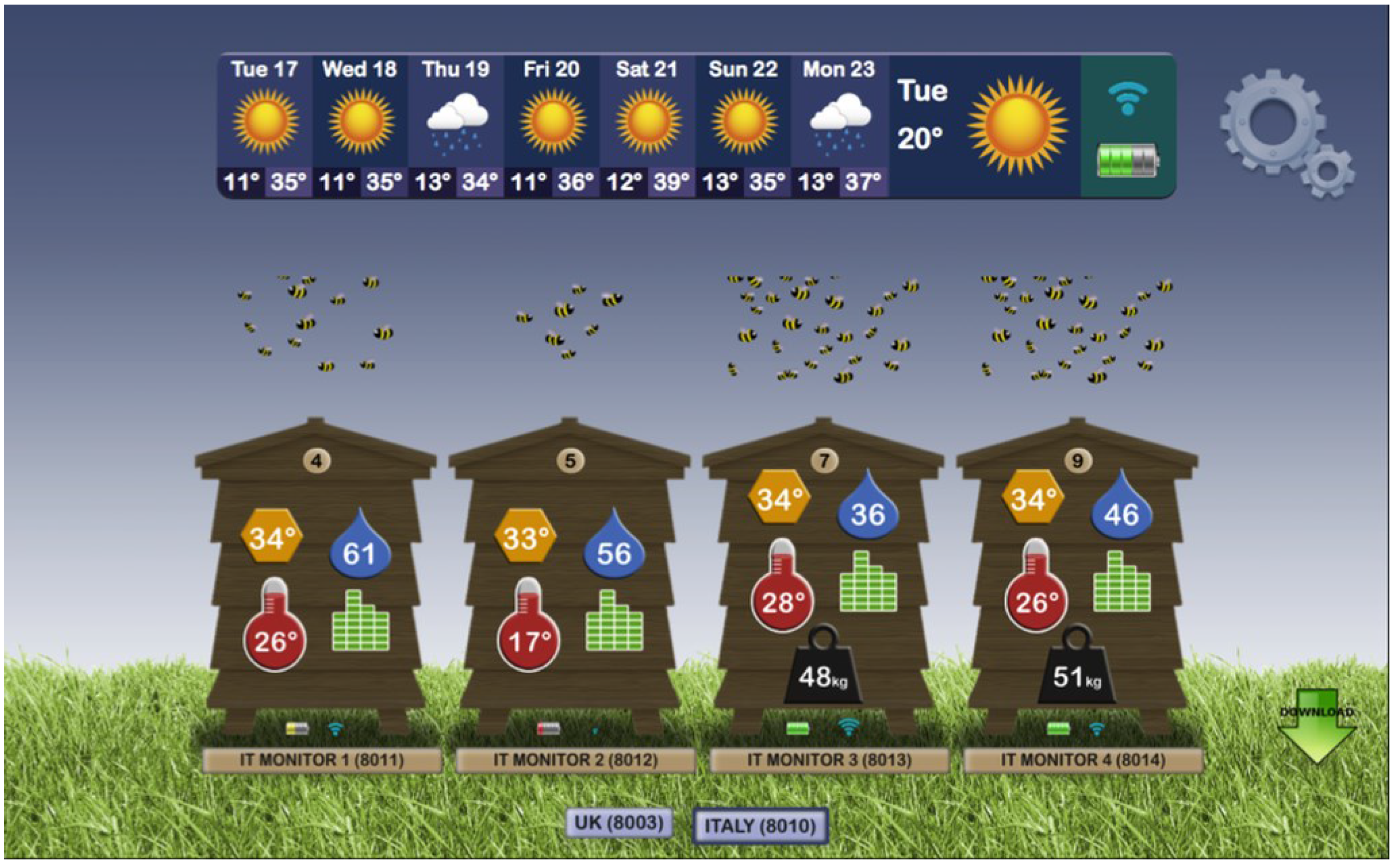 Arnia’s Remote Hive Monitoring web-based reporting system [89]. The interface is intuitive and works well for beekeepers.