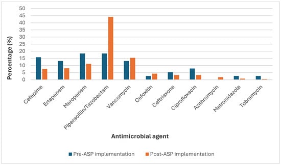 Antimicrobial resistance (AMR) is a growing concern worldwide and is now considered one of the most significant threats to public health. The overuse and misuse of antibiotics have been linked to increased rates of adverse drug events and the development of multidrug-resistant microorganisms, which can lead to prolonged hospital stays, greater morbidity and mortality, and higher healthcare costs [,]. Studies have reported that as much as 40–50% of antibiotic prescriptions in hospitals, worldwide, might be unnecessary. Even when antibiotics are necessary, they are often prescribed with excessive broad-spectrum coverage or for longer durations than needed [,].