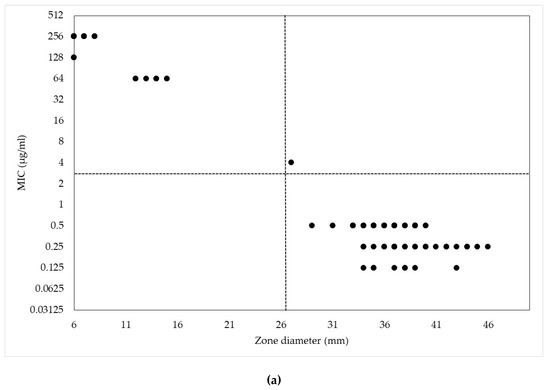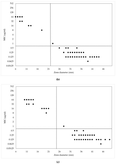 - Kronvall, G.; Giske, C.G.; Kahlmeter, G. Setting interpretive breakpoints for antimicrobial susceptibility testing using disk diffusion. Int. J. Antimicrob. Agents 2011, 38, 281–290. [Google Scholar] [CrossRef] [PubMed]