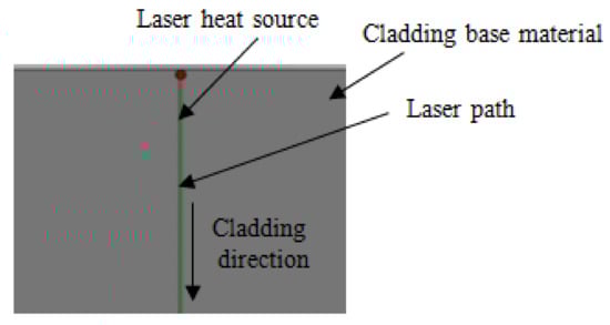 The cladding layer model was established in advance. In order to prevent the uncladding part from affecting the part under cladding, the “activated” node of COMSOL was used to simulate the laser cladding process during the numerical simulation calculation. Some parts of the field are deactivated before starting, while the deactivated part is multiplied by a small scaling factor to reduce the performance parameters of the material from the overall calculation. When the laser light source moves along the cladding path, the disused part is gradually activated and participates in the whole operation.