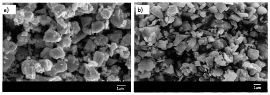 The metal matrix used in this study was a commercial 2024 aluminium alloy (Thomson Aluminium Casting Co., Cleveland, OH, USA), with the chemical composition shown in Table 1. Titanium carbide particles (Atlantic Equipment Engineers Co., Ltd., Upper Saddle River, NJ, USA) with an average size of 1.1 µm were used as the reinforcing phase. Porous green preforms of TiC (6.5 × 1 × 1 cm3) were obtained by compacting 12 g of TiC powder into a steel die applying 15 MPa. The TiC green preforms were sintered at 1350 °C over 1.5 h in an inert atmosphere of Ar. Figure 1 shows micrographs of raw and partially sintered TiC preform at 1350 °C. Notice the formation of an interconnected network was perceived in the preform after sintering. No changes in the TiC morphology were detected but more densification and pore shrinkage were observed. The density and porosity of the sintered preforms were evaluated according to ASTM C373-88 []. Finally, MMCs was manufactured by a pressureless infiltration technique in a horizontal tube furnace at 1200 °C by placing the sintered TiC preform and the Al-2024 alloy in a graphite crucible for 2 h under flowing Ar.