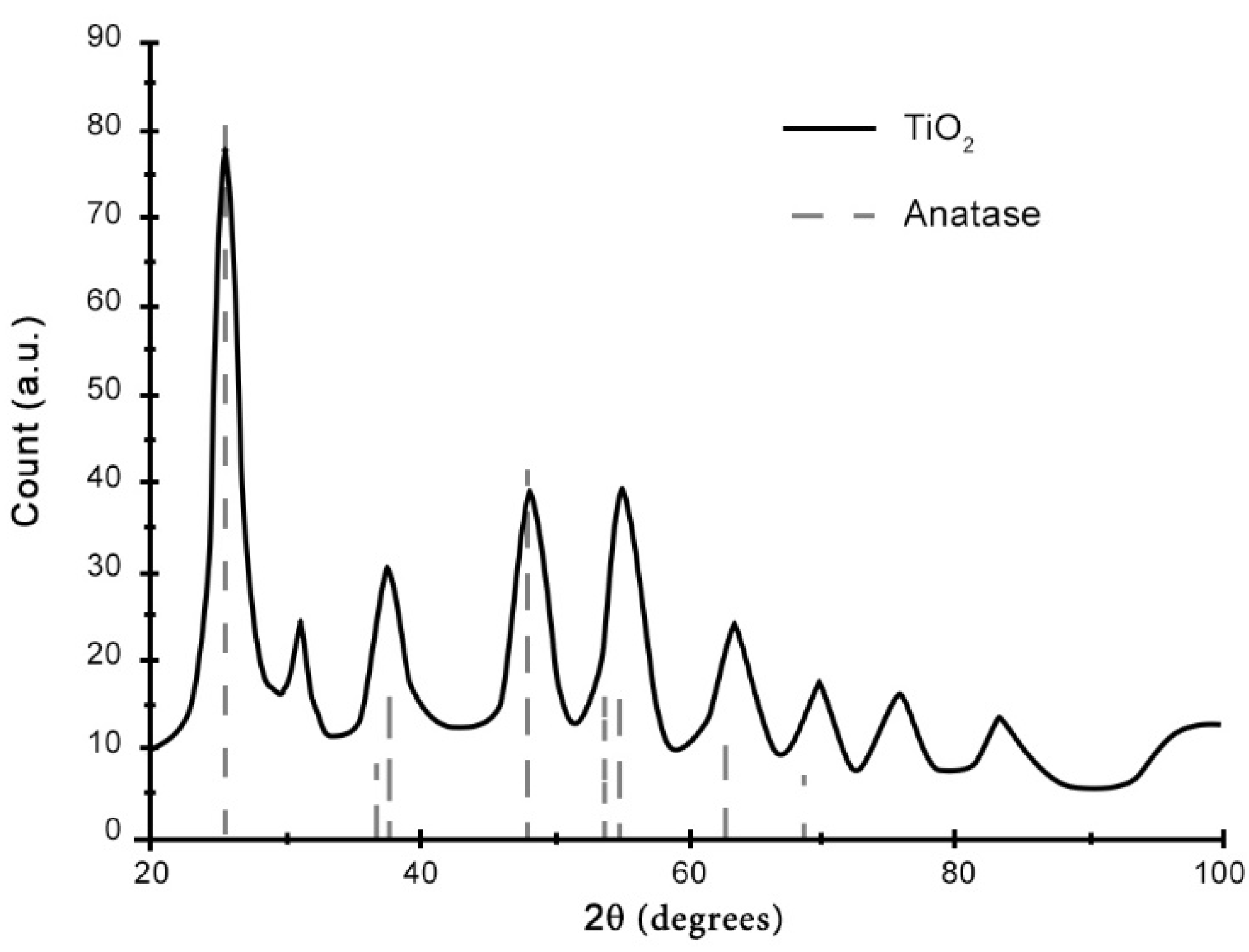 TiO2 sol was composed of very fine anatase crystals with a crystallite size of 4 nm, as estimated by the elaboration of XRD patterns (Figure 1).