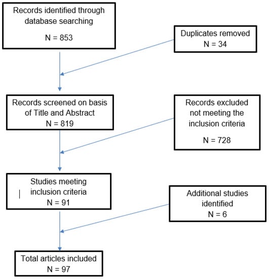 A total of 853 records were initially identified in the literature search, of which 34 were duplicates and 728 did not meet the inclusion criteria, thus being further excluded (Figure 1). A total of 20,877 biopsy specimens were investigated, of which there were 7174 for p16 IHC, 745 for Ki-67 IHC, 5329 for p16/ ki-67 dual staining (DS) and 9084 for telomerase up-regulation.