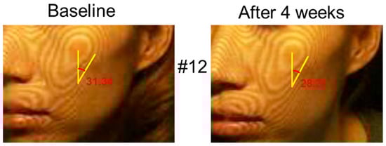 The skin contour angle of subject #12 at baseline and after 4 weeks of the use of the CF Magic Mask.