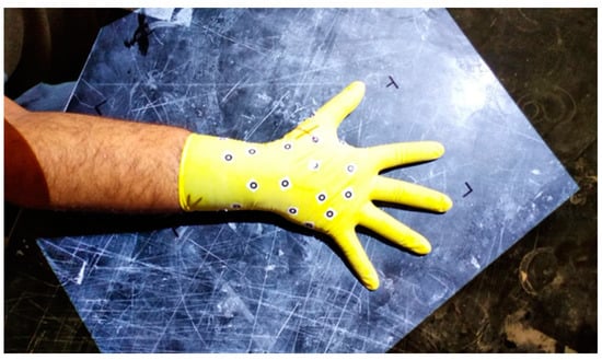 This section explains how the dimensions were taken for the design of the hand and forearm exoskeleton. A 3D scanner EinScan Pro 2X (SHINING 3D Tech. Co., Ltd., Hangzhou, China) was used to scan the hand; the EinScan Pro 2X has an accuracy of 0.04 mm, which was sufficient enough for taking the measurements. Figure 1 shows the hand being scanned from the EinScan Pro 2X. After the 3D scan, the scan is converted from surface model to a solid model. For this purpose, a Computer Aided Design (CAD) software “CATIA” (Dassault Systèmes, France) was used for converting the surface model to a solid model using the generative surface model design tool in CATIA. CATIA was used due to its advanced capability of processing surface models to solid models. The surface model obtained from the 3D scanning, converted into a solid model, is shown in Figure 2.