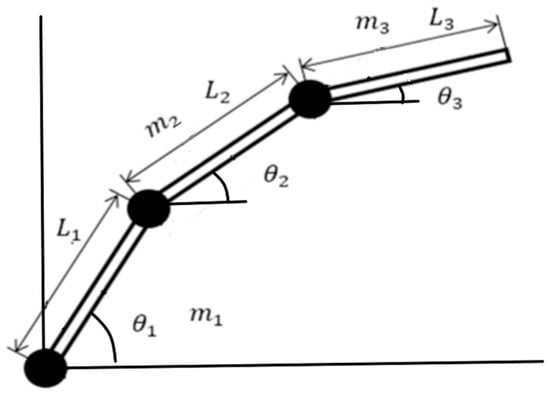 Newton–Euler is a hierarchical approach to “power/momentum equilibrium”, while the Lagrangian is a complex “energy-based” approach to dynamics. The dynamic Lagrangian Formulation (named after Joseph-Louis Lagrange) provides the derivative tools of movement equations of a scalar function called Lagrangian, known as the difference between a mechanical system’s kinetic and potential energy. The finger in the hand consists of three links and their dynamics were identified with the aid of the Lagrangian approach, shown below, as the links are equal in number. The general equation for each finger is thus the same but its masses and lengths are different. In Figure 7, this is shown. Consider a 3-degree-of-freedom system consisting of mass m1, m2, and m3.