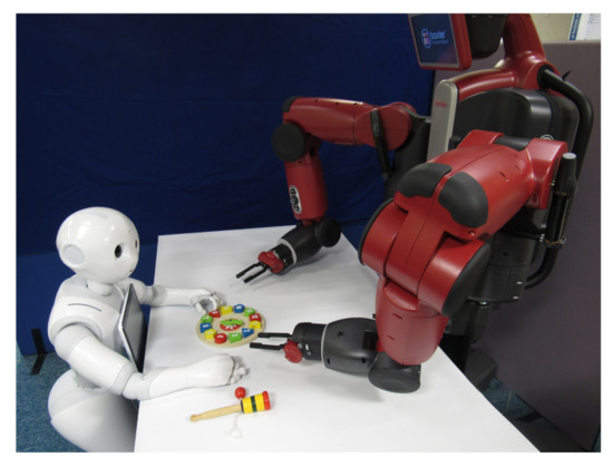 Human activities are diverse in nature. There is imprecision, vagueness, ambiguity and uncertainty in information about the way activities are performed. Thus, variabilities are encountered when developing models for activity classification/recognition—for example, in human–robot or robot-robot interaction requiring a robot to recognise and learn activities from another robot or human as illustrated in Figure 1. This can affect the correct classification of human activities, which is relevant in improving the amount of knowledge that can be used by a robot in learning. Considering human activity information obtained using visual sensors, the quality of information obtained of activities is a vital component of any recognition system. Early approaches to vision-based HAR utilised 2D information obtained using sensors such as RGB cameras []. However, it would be extremely hard to understand and interpret activities using such sensors which provide 2D visual data. These sensors provide limited information for an activity performed in a real-world environment. However, recent developments in RGB-depth (RGB-D) sensors showed that they are better devices for observing human activities []. These sensors provide a means of better observing the world to detect human poses, to build activity recognition systems [,]. They also provide a platform for exploiting depth maps, body shape and skeleton joint detection of humans in 3D space, which are used for developing sophisticated recognition algorithms.