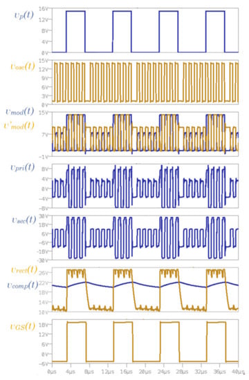 - Seidel, A.; Costa, M.; Joos, J.; Wicht, B. Isolated 100% PWM gate driver with auxiliary energy and bidirectional FM/AM signal transmission via single transformer. In Proceedings of the 2015 IEEE Applied Power Electronics Conference and Exposition (APEC), Manila, Philippines, 18–19 November 2015; pp. 2581–2584. [Google Scholar]