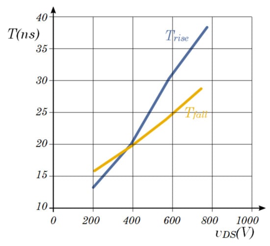 Specifically, for vGSon, even though the switching losses and the switching times decrease for higher voltage levels, such gate stresses might yield premature malfunction, therefore affecting the device reliability [].