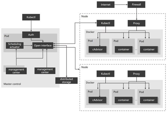According to the architecture design principles of K8s and K3s, when the system is running, it needs to isolate the host resources, virtualize the network, and arrange the running containers to realize the management and scheduling of the underlying computing resources. The K8s operating architecture is shown in Figure 2. However, considering the lightweight characteristics of terminal devices, the current Android system has tailored some kernels of the Linux system, including the module supporting the cloud-native network protocols, go language runtime environment, namespace and cgroup process isolation mechanisms, and the orchestration of container runtime. The cropping make it impossible to start the container management service, to realize the management of the full life cycle of the container, and the orchestration of distributed containers; this means it cannot support K8s or K3s.