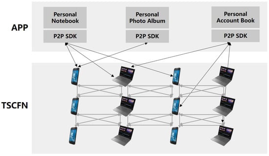 With the explosive growth of digital content, there is a huge demand for content storage by individuals. According to MarketsandMarkets forecast, the global personal cloud scale was USD 23.7 billion in 2019, and the market size is expected to reach USD 73.4 billion in 2024, with a compound annual growth rate of 25.4%. At the same time, with the increasing demands of privacy and security, the centralized cloud storage model has many shortages such as slow transmission speed, file restrictions, expensive storage price, and so on. The user-centric distributed storage model has become a new trend. Based on TSCFN, idle storage capabilities of smartphones, smart TVs, smart speakers, and other devices can be integrated to provide users low-cost storage for high privacy distributed storage service. Figure 5 shows an overview of personal cloud services based on TSCFN.
