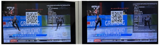 QoS is the most concerning aspect for video streaming services, mainly reflected by the delay frequency and the delay duration. The impact of the delay duration on user experience is more obvious. When the delay duration is small, the delay frequency can be ignored. For accurate calculating, delay frequency, and delay duration, we use an external camera to record the pictures of two 1S devices, and use the python script to calculate the result according to the QR code timestamp. We can calculate the delay duration and the delay frequency by comparing the time difference between each frame of the captured video and the original video. The experimental environment is shown in Figure 9.