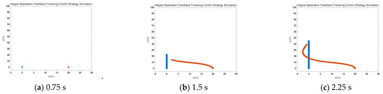 Integral separation feedback following control simulation results ( = 2 ( = 2), recorded every 0.75 s). The blue line is the trajectory of the leading vehicle and the red line is the trajectory of the following vehicle.