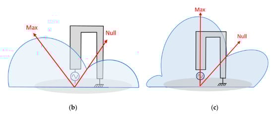 - Abdallah, M.; Colombel, F.; Le Ray, G.; Himdi, M. Quasi-Unidirectional Radiation Pattern of Monopole Coupled Loop Antenna. IEEE Antennas Wirel. Propag. Lett. 2009, 8, 732–735. [Google Scholar] [CrossRef]