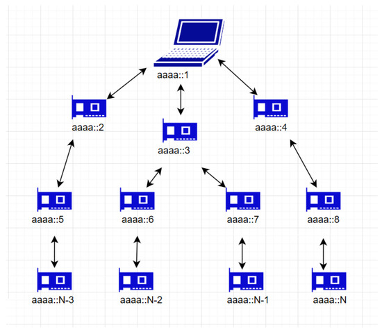 RPL DODAG with N Nodes from aaaa::1 to aaaa::N.