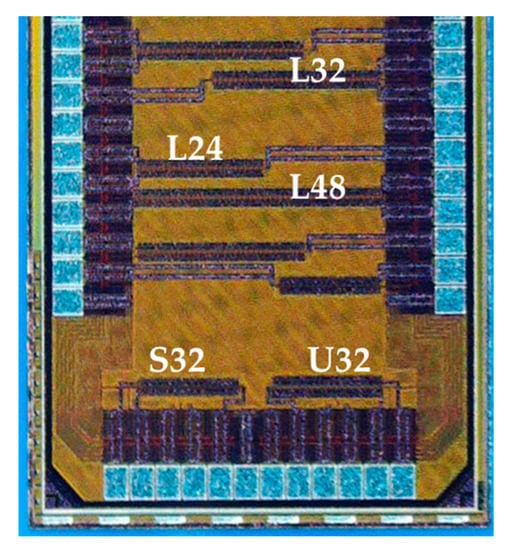 Five rectifiers, as shown in Table 3, were fabricated in 65 nm CMOS. Figure 10 shows a die photo. The single-diode rectifier, the CMOS latch-type rectifier and the ULPD-type rectifier had an area of 240, 440 and 340 µm2 per stage, respectively. If transistors and MIM capacitors were stuck, the stage area could be smaller than 200 µm2. because capacitor area determines circuit area and the capacitor size is common to those three.
