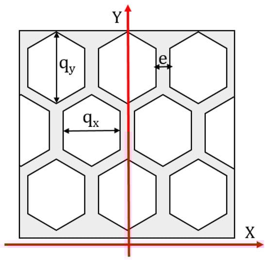 The structure of the metal mesh makes it possible to make optically transparent conductive films for antennas. The principle of the mesh technique is to create holes in a structure to let light pass. Transparency and sheet resistance change with the surface variation of these holes. Figure 3 represents the honeycomb structure chosen in this work. In general, the sheet resistance of the structure of the network is calculated by the equation []: