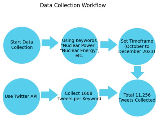 The data collection process involved extracting tweets from X, focusing on those related to nuclear power. The authors utilized specific keywords to filter and gather relevant tweets. These keywords included “nuclear power”, “nuclear energy”, “nuclear debate”, “nuclear industry”, “nuclear economics”, “nuclear concerns”, and “nuclear benefits”, among others.