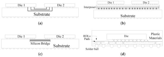 Description of Chiplet Packaging Technologies; (a) Substrate-based Packaging, (b) Silicon Interposer-based Packaging, (c) Silicon Bridge-based Packaging, (d) RDL-based Packaging.