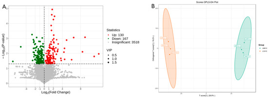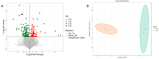 PLS-DA analysis indicated that metabolites in the MS-222-treated group were separated from those in the control group, and the samples in the same treatment group were clustered together (Figure 8B).