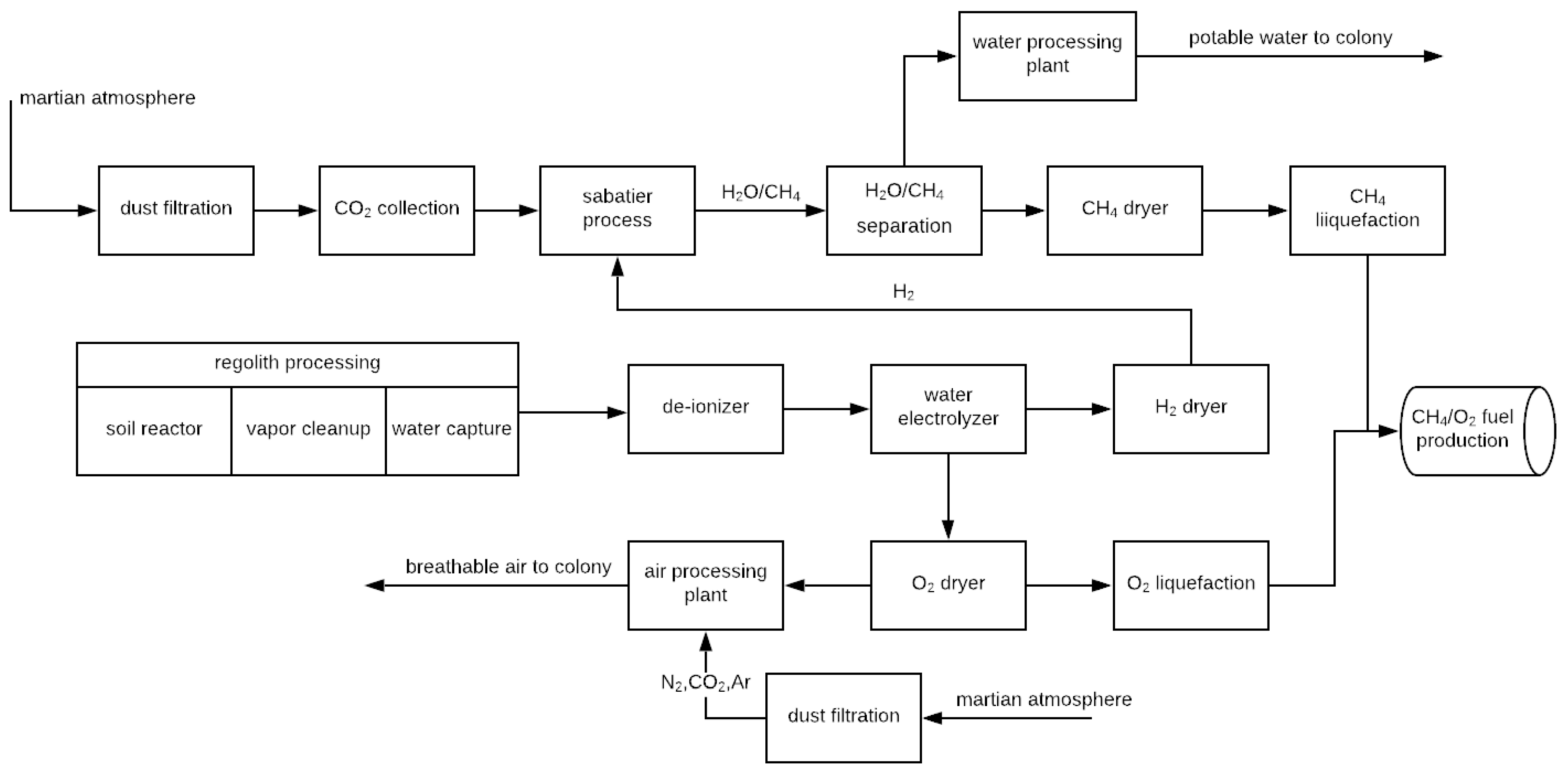 - Zubrin, R.; Frankie, B.; Kito, T.; Zubrin, R.; Frankie, B.; Kito, T. Mars in-situ resource utilization based on the reverse water gas shift-experiments and mission applications. In Proceedings of the 33rd Joint Propulsion Conference and Exhibit, Seattle, WA, USA, 6–9 July 1997; p. 2767. [Google Scholar]